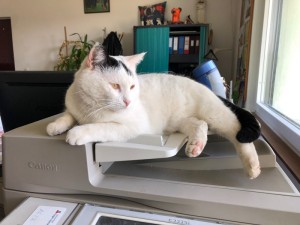 FINON, le matou, était arrivé au refuge, en 2017, placé par la suite à l’adoption, en chatterie ; il a trouvé un foyer de courte durée, du fait de son caractère bien trempé ; il a donc été décidé de le garder en chat libre ; la SPA de Mulhouse Haute-Alsace est rapidement devenue son royaume au point d’être renommé KING FINON : il aimait déambuler dans nos locaux, se poser n’importe où et parfois taquiner ses congénères ; il appréciait particulièrement se nicher à l’accueil, sur les bureaux, afin de recevoir des gourmandises.