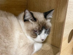 C'est un matou calme mais très timide ; il a besoin d'un peu de temps pour s'acclimater.