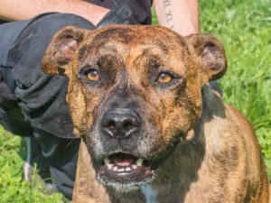C'est une gentille chienne affectueuse plutôt calme (sauf quand elle est lâchée et qu'elle court) et joueuse ; elle vivait en appartement ; elle est habituée à la voiture ; il faut l'habituer progressivement à rester seule afin qu'elle ne fasse plus du tout de bêtises ; elle se montre très gentille avec les enfants ; elle n'aime pas les autres animaux ; elle connaît les ordres "assis", "non" et "stop". C'est une chienne de première catégorie (permis de détention obligatoire), contrat de garde en famille d'accueil.