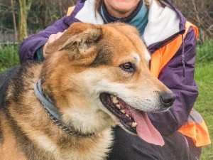 C'est un grand chien très sympa (malgré le fait qu'il aboie quand il se trouve dans son box), très gourmand, assez vif, joueur, affectueux qui fait facilement des bisous même quand il ne vous connaît pas ; il donne la patte facilement et connaît l'ordre "assis", même si il faut bien lui répéter ; il se montre très réactif envers ses congénères, avec les matous, l'entente est à tester. Il faut quand même une certaine force pour le tenir en laisse.